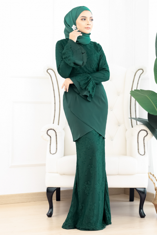 Baju Kurung Lace Sabrina Emerald Green Muslimahclothing Com