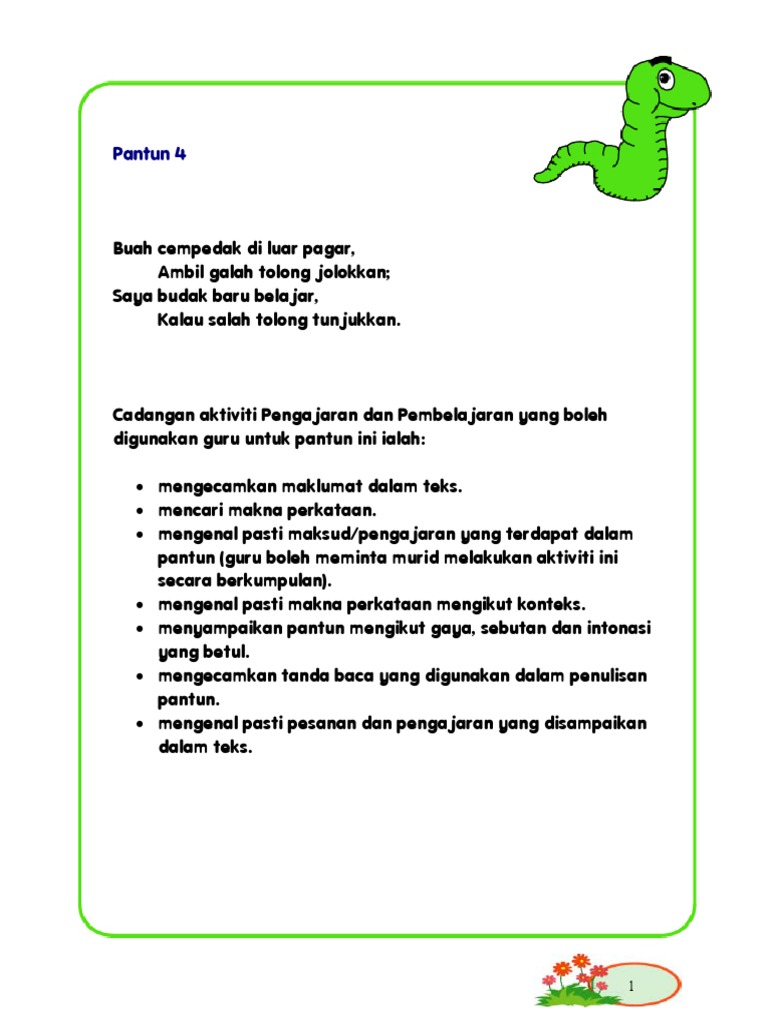 Aktiviti Pembelajaran Dan Pembelajaran Pantun 4