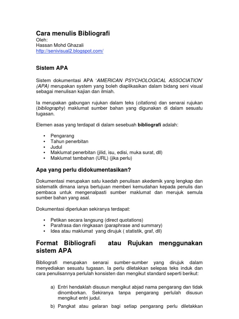 Cara Penulisan Bibliografi