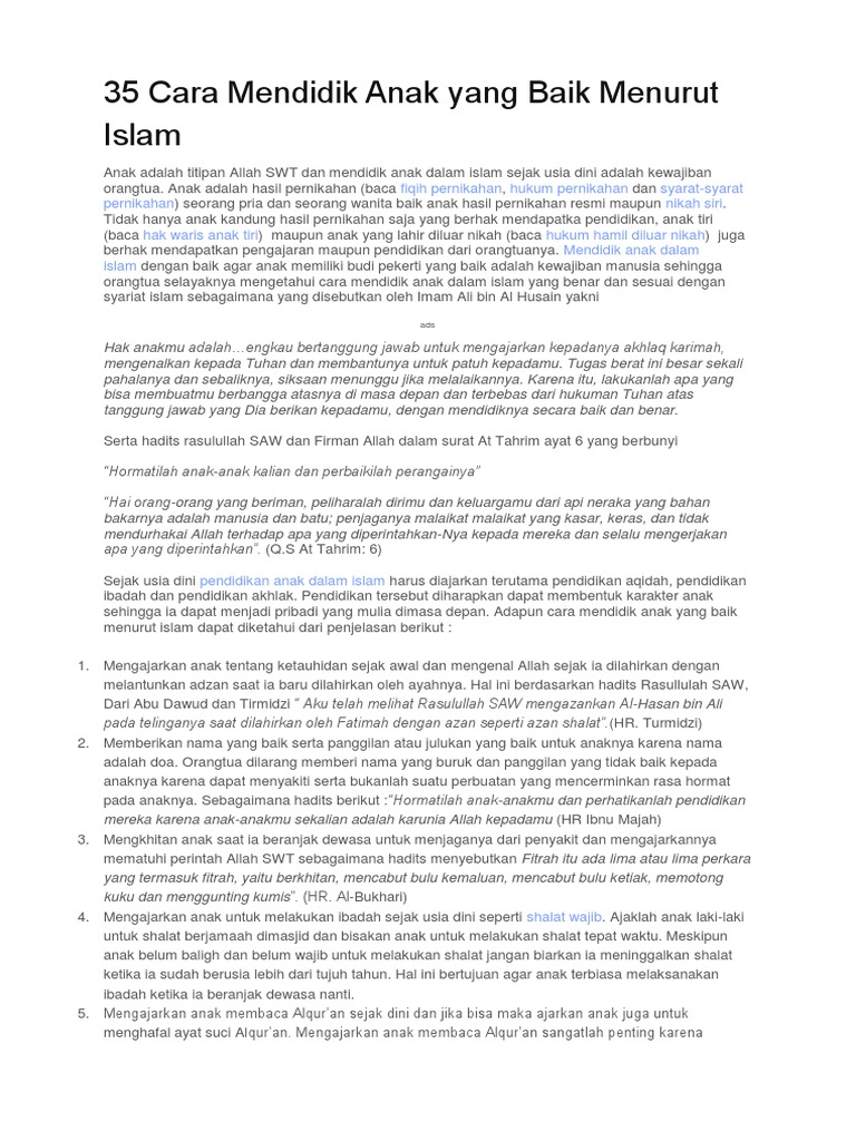 35 Cara Mendidik Anak Yang Baik Menurut Islam