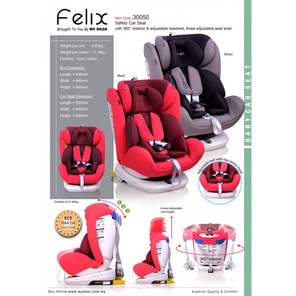 My Dear Felix One Safety Car Seat Suitable For Child 0 36kg With Ece R44 04 Shopee Singapore