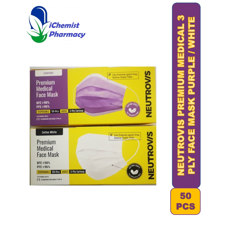 Neutrovis 3 Ply Earloop Premium Medical Face Mask Adult 50 Sheets Purple White Shopee Malaysia