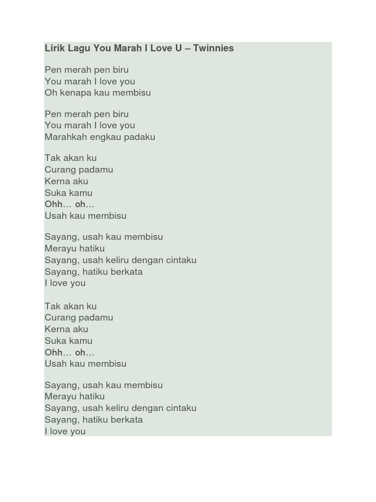 Lirik Lagu You Marah I Love U
