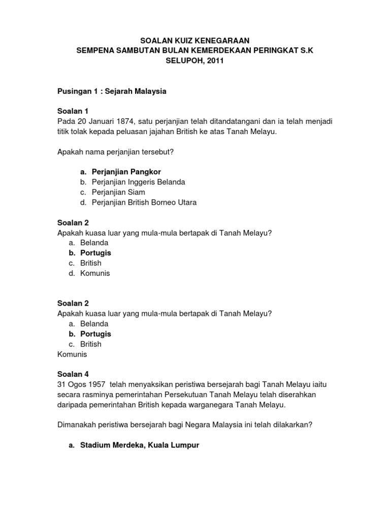Contoh Soalan Kuiz Kemerdekaan Dan Jawapan Persoalan V